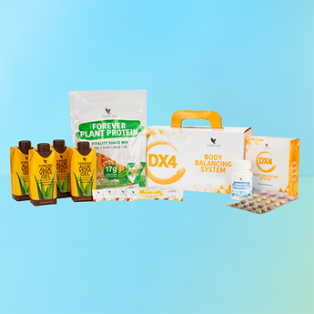 Дні 1-2 програми зосереджені на обмеженні калорій, тоді як дні 3-4 зосереджені на включенні в раціон більш здорової, зеленої, твердої їжі. Протягом 4-денної програми ви будете слідкувати за тим, як ваш організм себе почуває в цілому, як він реагує на продукти та які зміни стають помітними, для того, щоб сприяти розвитку зв’язку розуму та тіла. Забезпечення достатнього споживання води є важливим компонентом цієї програми і тому допомагає виробити звичку споживати більше води також і після завершення програми. Кожен день програми Форевер DX4 присвячений одній з тем: вирішувати, визначати, відкривати та присвячувати. Протягом цих чотирьох днів ви зможете покращити зв’язок розуму та тіла для поліпшення свого загального здоров’я. DX4™ включає: Форевер Терм Плюс – 12 табл. Форевер Терм Плюс — це потужна добавка, отримана із зеленого чаю, гуарани та зеленої кави, порошку шафрану та вітамінів B12 і C, які сприяють нормальному метаболізму, виробленню енергії та зменшують втому, сприяючи підтримці здорового обміну речовин та рівня енергії. Форевер ДуоПюр – 8 табл. Форевер ДуоПюр поєднує в собі екстракт граната і японського споришу з холіном, фолієвою кислотою та вітамінами B6 і B12. Холін сприяє підтримці нормальної функції печінки, тоді як вітаміни групи В і фолієва кислота підтримують багато інших функцій, зокрема вітамін В6 сприяє нормальному метаболізму білка і глікогену. Форевер Мульти Фізз – 4 шипучі таблетки. Форевер Мульти Фізз — це шипуча таблетка з бадьорим освіжаючим смаком кавуна, яка допоможе вам поліпшити насичення організму вологою, надаючи воді свіжого смаку. Він також посилений вітамінами С, В і Е. Форевер ЛемонБласт – 4 пакетики. Рослинні інгредієнти у цій зручній упаковці змішуються з водою, створюючи терпкий, злегка пряний смак лимону, імбирю та кайєнського перцю із доданням порошку куркуми, яким можна насолоджуватися як у гарячому, так і в холодному напої. Він містить унікальну суміш розчинної клітковини з магнієм для підтримки електролітного балансу та нормальної психологічної функції. Форевер Сенсатіабль – 32 жувальні таблетки. Форевер Сенсатіабль містить глюкоманнан. Це приємне позбавлення від щоденних спокус. У ньому багато клітковини, яка має виняткову здатність поглинати воду. Форевер Рослинний Протеїн – 1 пакет Форевер Рослинний Протеїн містить 17 грамів протеїну на кожну порцію. Це – веганська формула, яка не містить молочних продуктів і сої. Він має чудовий смак ванілі та однорідну незернисту текстуру, на відміну від багатьох інших протеїнів рослинного походження. Протеїн гороху та гарбуза сприяє нормальному функціонуванню кісток, збільшенню та підтримці м’язової маси. Форевер Гель Алое Вера – 4 ТетраПак упаковки. Форевер Гель Алое Вера містить 99,7% чистої м’якоті листя Алое вера та вітамін С, що сприяє нормальній роботі імунної системи. Переваги програми• Легкий у дотриманні 4-денний план • Веганський/вегетаріанський протеїн • Містить холін для підтримки нормальної функції печінки Обов’язково споживайте мінімум два літри води на день